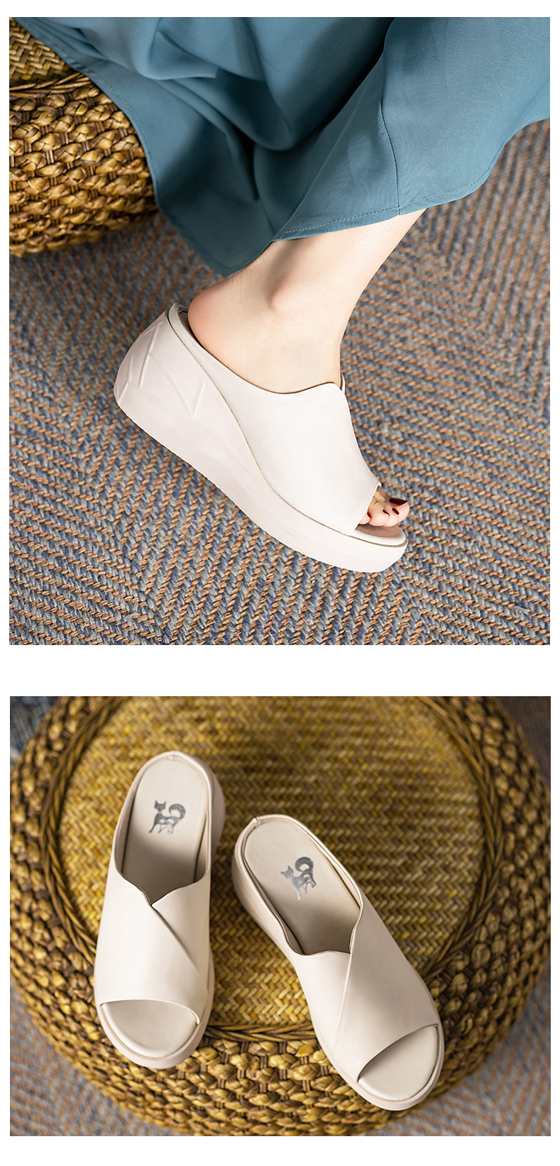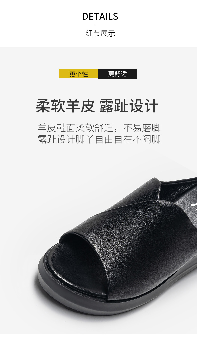 浪莎坡跟涼拖女外穿2021春新款夏天時尚高跟真皮懶人厚底魚嘴拖鞋
